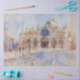 This design features a painting by the French Impressionist artist Pierre-Auguste Renoir (1841–1919). It is an elegant and colorful depiction of the main public square in Venice, Italy, which is known as Piazza San Marco (or, in English, St Mark's Square). The sky and ground are painted in blue while the detail is highlighted in red. The main building that can be seen in this painting is St Mark's Basilica (Basilica di San Marco), which is the cathedral church of the Roman Catholic Archdiocese of Venice; it is the most famous of the city's churches and one of the best known examples of Italo-Byzantine architecture. The original artwork was painted in 1881, and it is now housed in the Minneapolis Institute of Art.