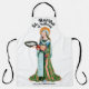 St. Martha of Bethany (1st century) appears perhaps three times in the Gospels: preparing two (separate?) dinners (Luke 10:38-42 and John 12:1-3) as well as witnessing the raising of her brother Lazarus from the dead (John 11:1-45 passim). Admittedly, she seems somewhat prickly and no-nonsense in Luke where she rebukes her sister Mary for neglecting her household duties by sitting and listening to Jesus teach and in John where she chides Jesus for coming late to Lazarus’ funeral. But what hostess wouldn’t be stressed out by the appearance of at least thirteen extra guests for dinner even if they were Jesus and His Twelve Apostles? And what woman wouldn’t be stressed out by the illness and death of a beloved brother seemingly ignored by a dear friend of the family? St. Martha was only human and she is best remembered from the New Testament as the quintessential example of hospitality. + At the more celebratory dinner at Bethany in John 12:1-3, the author simply states: “and Martha served” (in Greek: καὶ ἡ Μάρθα διηκόνει...). Martha’s charism, her way to live out the Gospel in relation to the world around her, was to attend to her domestic responsibilities to family and friends to the best of her abilities out of love. Thus, she has come to symbolize the active life (vita activa) of religious communities and the laity. + The figure of St. Martha here has been extracted from the central panel of a triptych altarpiece painted in 1503 by an anonymous Middle Rhenish artist. This panel depicts the dinner mentioned in John 12:1-3 that took place in Bethany after the raising of Lazarus and just before Jesus arrived in Jerusalem on Palm Sunday. Donated by Canon Peter Lutren, the triptych still graces the Martha altar in the southern choir of the Church of Our Lady (Liebfrauenkirche) at Oberwesel, Rhineland-Palatinate, Germany. (See our Dinner at Bethany COLLECTION for the full image, additional information, and related items for purchase.) + Tongue in cheek, rather than ancient sandals or the turned Medieval shoes with pointed toes that she wears in the original painting, Saints_Aplenty has given St. Martha comfy athletic shoes on our aprons especially for waitstaff. Her footwear is of the type a 21st-century waitress might wear--only in powder blue with bright aqua shoelaces that match her ensemble! As she returns to her kitchen moving leftward (we’ve flipped the image), St. Martha can carry an empty platter, fish scraps, or dirty dishes. The choice is yours. Go into the Design Tool and hide and/or unhide the version you prefer! (Here we have chosen the fish scraps). A Saints_Aplenty exclusive. +St. Martha is the third saint featured in our Apron Series. She is patron of single laywomen, homemakers, restaurant workers, cooks, and the hospitality industry in general. She shares a feast day with her siblings St. Mary of Bethany (not to be confused any longer with the Magdalene) and St. Lazarus on July 29. + Special Image Credit (extracted figure of St. Martha): Photo by Rolf Kranz of a public domain painting that is well over 100 years old from WikiMedia Commons (By Rolf Kranz - Own work, CC BY-SA 4.0, https://commons.wikimedia.org/w/index.php?curid=106002864).