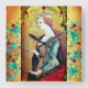 Elegant and classic Christmas design on old aged parchment effects , Fine art masterpiece ,painting by Carlo Crivelli Italian Renaissance painter of Late Gothic decorative sensibility..Mary Magdalene, richly attired, long haired young woman wears sophisticated gorgeous red dress and holds a jar of ointment. .He painted her face with thin, delicate brushstrokes, while he used thicker, heavier strokes for her robes. Some details are painted with precious gold leaf, applied on a mixture of plaster and lime. It is also a beautiful design for Christmas ,Holidays,Easter special occasions. Photography and digital treatment for better printing by Bulgan Lumini.