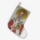 Perfect! Exactly what I ordered! I uploaded a picture of my blue chow, and the screen print was incredible. the back side of the stocking was the red and black checkered print. my puppy's name was also printed on the cuff of the stocking. PERFECT! Highly recommend this product! My puppy's name was screen printed onto the cuff of the stocking, the font was perfect!