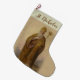 Perfect! Exactly what I ordered! I uploaded a picture of my blue chow, and the screen print was incredible. the back side of the stocking was the red and black checkered print. my puppy's name was also printed on the cuff of the stocking. PERFECT! Highly recommend this product! My puppy's name was screen printed onto the cuff of the stocking, the font was perfect!