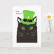 This Saint Patrick's Day card says, "Hey, Friend!" (for him or her). The design features a black cat wearing a green top hat with a buckle and shamrock. He (she) peers out at the viewer under the brim. Inside is an Irish toast. You may add images or text to the inside. Just click on "Customize".