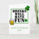 St. Patricks Day Card with Four Leaf clover - that specify Hope, Faith, Love and Luck. Beer Mug - Enjoy and Fun. Leprechaun Hat - Pot of Gold.