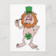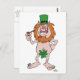 Cartoon of a leprechaun and shamrock :) on a postcard. Customizable :)