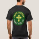 St. Patrick was Roman and in Latin he is hailed as "Sanctus Patricius." Here we have a formal deep Irish green background and the words "Sanctus Patricius, Ora Pro Nobis" -- Latin for "St. Patrick, Pray For Us." Those are words that have been said since the Middle Ages. A Celtic cross is in the center. The front of this shirt has Latin and the back has English. This would be great for any traditional Latin Mass Catholic or anyone who loves Latin and religious history. The Celtic cross and the deep emerald green can lend elegance to traditional St. Patrick's Day celebrations. Wear it to the parade!