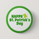 St Patrick's day button with a green shamrock and green border. Green Happy St. Patrick`s day text. For your St. Patrick`s day party or a perfect gift.