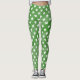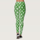 St Patrick's Day shamrock patterned leggings with lucky shamrocks in a white color. The background is in irish green pattern color.