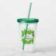 This acrylic tumbler has it's own lid and straw. Shown in green with a mess of shamrocks and text of Happy St. Patrick's Day on both front and back.