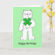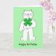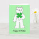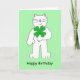 St Patrick's Day Birthday Cat With Shamrock Card