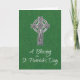 A photo of a Celtic crucifix is at the center of the card. A woven texture looking background is green for the Irish holiday. Send this blessing that Christ be with you to celebrate St. Patrick’s Day.