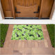 Cute St. Patrick's Boston Terriers wearing many shades of green with striped and heart sweaters with scattered four leaf clovers and dog bones on a green background.