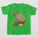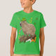 A great t-shirt for Saint Patrick's Day featuring a capybara, baby capybaras, gold coins, horseshoes, rainbows, with an Irish flag and shamrocks!