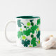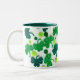 Coffee mug with a photo image of my original crocheted heart shamrocks.