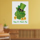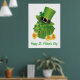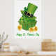 Happy St. Patrick's Day Leprechaun Hat, Gold Coins and Cupcake with Three Leaf Clover Shamrock Sprinkles Dessert Festive Illustration Drawing Poster