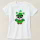Adorable St Patrick's Day T-shirt with a cute panda bear wearing green costume including a top hat, green jack, red bow tie and buckled shoes. All patterned with green shamrocks.