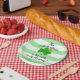 This adorable St Patrick's Day themed paper plate design for baby shower is mainly of green and white color scheme.
