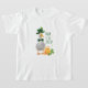 A cute festive St. Patrick's Day t-shirt featuring a lucky duck with a green Irish hat and bow tie beside a pot of gold with shamrocks.
