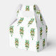 This charming watercolor-style artwork celebrates St. Patrick's Day with a whimsical touch. At the heart of the image is a quaint green house with a thatched roof, complete with tiny windows, a green door, and surrounded by lively clovers and lush greenery. Above the house, a large green gingham bow adorned with delicate lace detailing adds a festive flair, tying together the holiday spirit in a soft, artistic presentation.