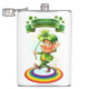 Well made flask, a little better than I had expected. Flask came in clear plastic box which gave it a nice presentation when I took it out of the zazzle packaging. Image is not printed on flask but on sticker. Don't know how this will hold up I haven't used it yet. This would make a Great gift! I plan to purchase more for friends! Cheers. I thought a little brighter than computer. Very crisp, writing wasn't