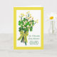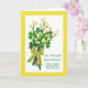 St. Patrick's Day wishes for a daughter and son-in-law. Greeting card with sprigs of yellow flowers, pussy willows, and shamrocks. Bouquet held together with a pretty spring bow. Bow is a photograph and not a real bow. Art, image, and verse © Shoaff Ballanger Studios, 2021.
