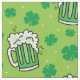 Cute, hand-drawn cartoon mugs of green beer on a green background with four leaf clovers. It's a whimsical pattern for celebrating Saint Patrick's Day! Sew something unique with this custom fabric!