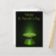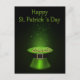 A magical St. Patrick's Day illustration featuring green top hat full with golden shamrock coins, sparkling on a black background.