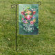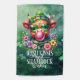 A Cute, St Patrick's Day Themed Highland Cow garden flag featuring vibrant colors and a whimsical design with pastel flowers. Perfect for adding a festive touch to your garden or house decor during St Patrick's Day celebrations. Ideal for those who love whimsical and fun decorations. @AlderwoodImpressions copyright.