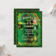 St. Patrick's Day party invitation featuring a green four leaf clover and a green glitter look.