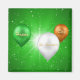 A St. Patrick's Day illustration: 3 balloons in the irish flag color green, white, orange with the text "Happy St. Patrick's Day" in gold letters on a green background with sparkling stars.
