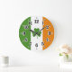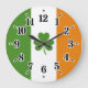 St Patrick's Day Irish Flag with Shamrock Clover Large Clock