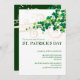 "May your blessings outnumber, the shamrocks that grow, and may trouble avoid you wherever you go." Reads a wonderful Irish Blessing on the back of the invitation with a decorative flourish of lucky shamrocks decorating the front in this fun invitation for your St. Patrick's Day celebration!
