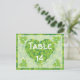 St. Patrick's Day Irish wedding table number postcard, featuring a green white pattern and an elegant heart made of Irish green lucky clover/shamrock.