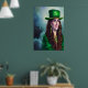 A young lady with brown hair wearing green clothes and hat. This is a AI generated art.
