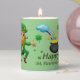 Colorful, picture of a leprechaun, shamrocks, rainbow and a pot of gold is featured on this pillar candle. With message, "Happy St.Patrick's Day" this makes a great decoration to use or give as a gift to help brighten someone's St.Pat's Day!