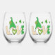 St Patrick's Day Love Gnome Stemless Wine Glass