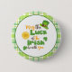 This festive holiday button features text image "May the luck of the Irish be with you" with Irish hat, coin and shamrocks on a green plaid background. Perfect for your St Patrick's Day!