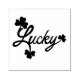 St. Patricks Day design features Lucky script and clover leafs in green. Personalize with your name or personal message.