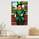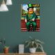 A man with blond hair and beard in green clothes and a big green hat. This is a AI generated art.