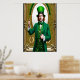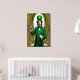 A man with brown hair and beard in green clothes and a big green hat. This is a AI generated art.