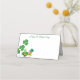 This folded name place card is shown in white with a festive St. Patrick's Day leprechaun clovers print.