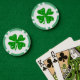St Patricks Day party poker chips | Green shamrock. Vintage distressed look vector design for St Paddys Day. St Patty Day 4 leaf clover. Lucky Irish symbol.