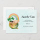 Save the date postcard with an adorable illustration featuring a smiling green and gold pot with a cute rainbow,
