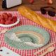 These whimsical St Patrick's Day paper plates features a watercolor rainbow with a coordinating green and white polkadot background.