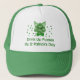 He's mangy, green and wearing a bow tie. He's the St Paddy's Day scrapper cat and he says "Drink up Pussies, it's St. Patrick's Day."