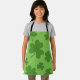 Great color and even though I ordered the kid size, it covers well enough to use during the holidays. I am not a big woman and prefer a shorter apron. I stand 5"6" and the length of the garment goes to mid-thigh. The tie straps fit well at my waist and even though there is no neck strap adjustment, the opening is plenty big enough. I am happy with the size and fit. I am sharing my apron with my 10 year old grandson, too! The color is vibrant and looks good, as shown on the website. The stitching looks strong and reinforced. Photographed is front side and back side of the apron, reinforced straps and coloring. My phone camera may not be the best at showing the details.