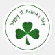 Happy St. Patrick's Day sticker, with a green shamrock design with a green border on a white background. With green typography lettering, you can customize with your own text. Great for your St. Patrick's Day cards and invitations.