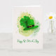 Simple St. Patrick's Day card with shamrocks and a leprechaun hat drawn in a sketchy doodle watercolor style with splashes of "paint" splatters; faux background appears to be watercolor paper.
