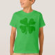 Cute St Patricks Day tee shirt for children | Green shamrock. Vintage distressed look vector design of a 4 leaf clover symbolic for Irish luck. Personalizable with your own St Paddy quote. Grunge style Saint Pats party clothing for kids. Clothes for boys and girls.