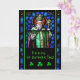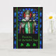 Beautiful stained glass image of Bishop of Ireland, St. Patrick himself. The inside has an Irish Prayer of the Faithful and an Irish Blessing.