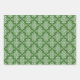 Lovely, set of 3 St. Patrick's Day wrapping paper, features a white and green patterned sheet, green shamrock hearts on a white background and a vintage picture of a dancing Irish miss! Three different designs to use for St. Patrick's Day or Irish gifts! A great way to give presents all wrapped up!